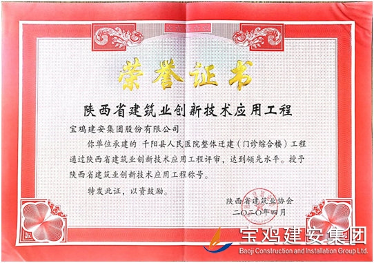 本工程2019年被評為“陜西省優質結構工程”、“ 陜西省省級文明工地”。
